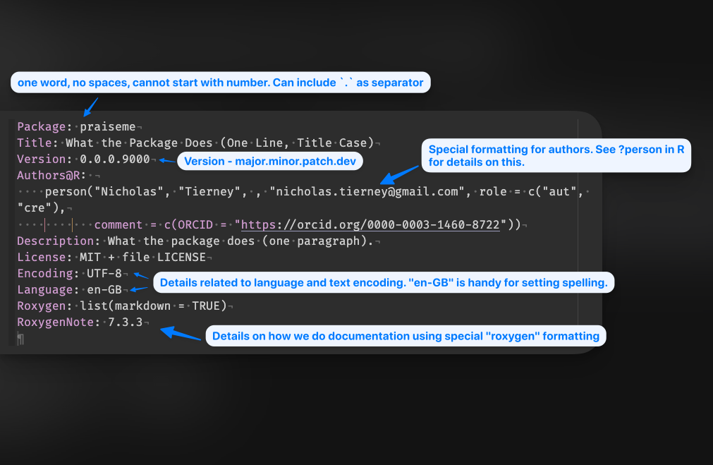 - This metadata is really important and specifically formatted. Not indenting properly, or adding a new line somewhere can sometimes cause your package to not work.