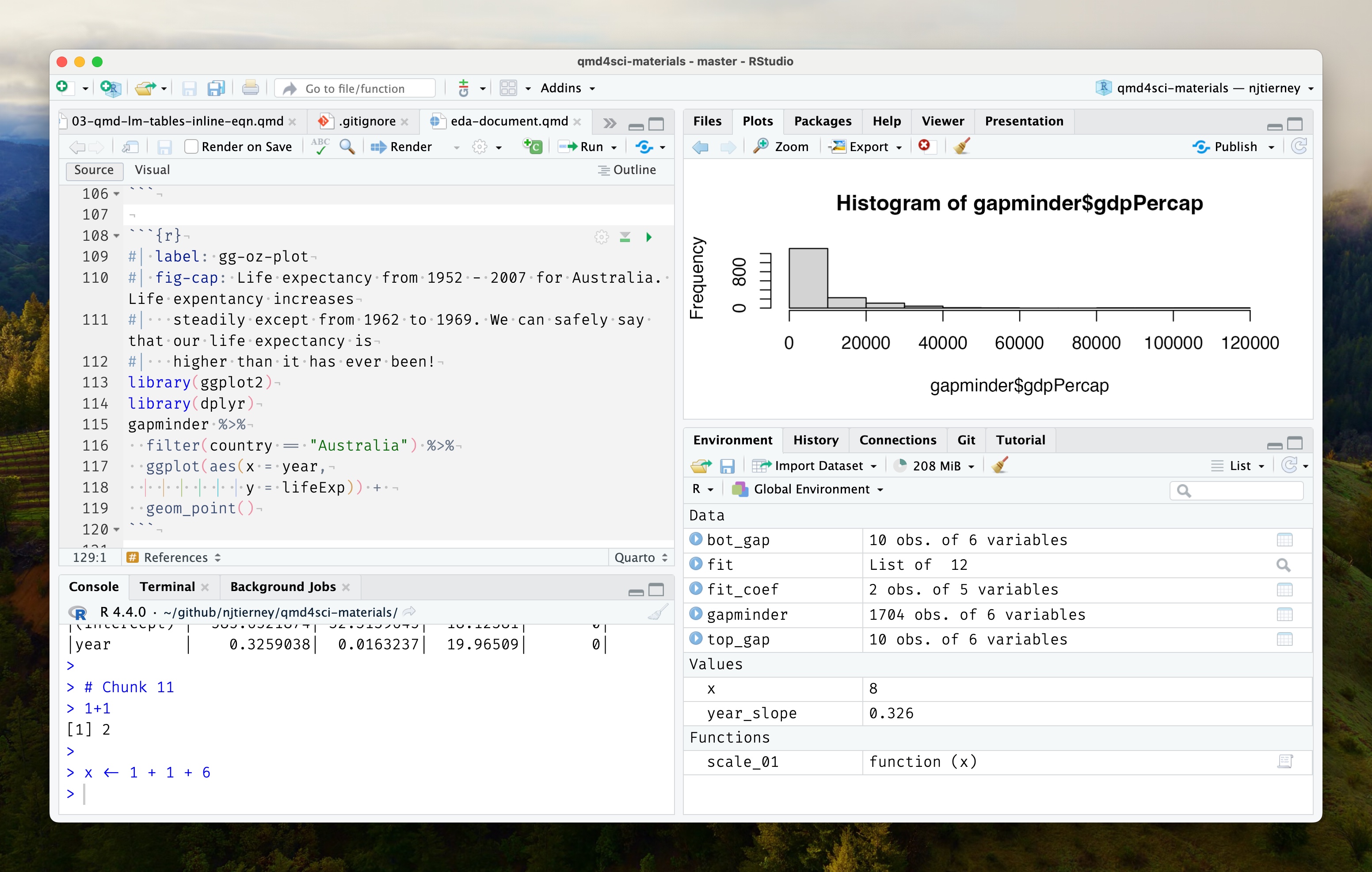 - On the lower right, the view for files, plots, packages, help, and viewer.